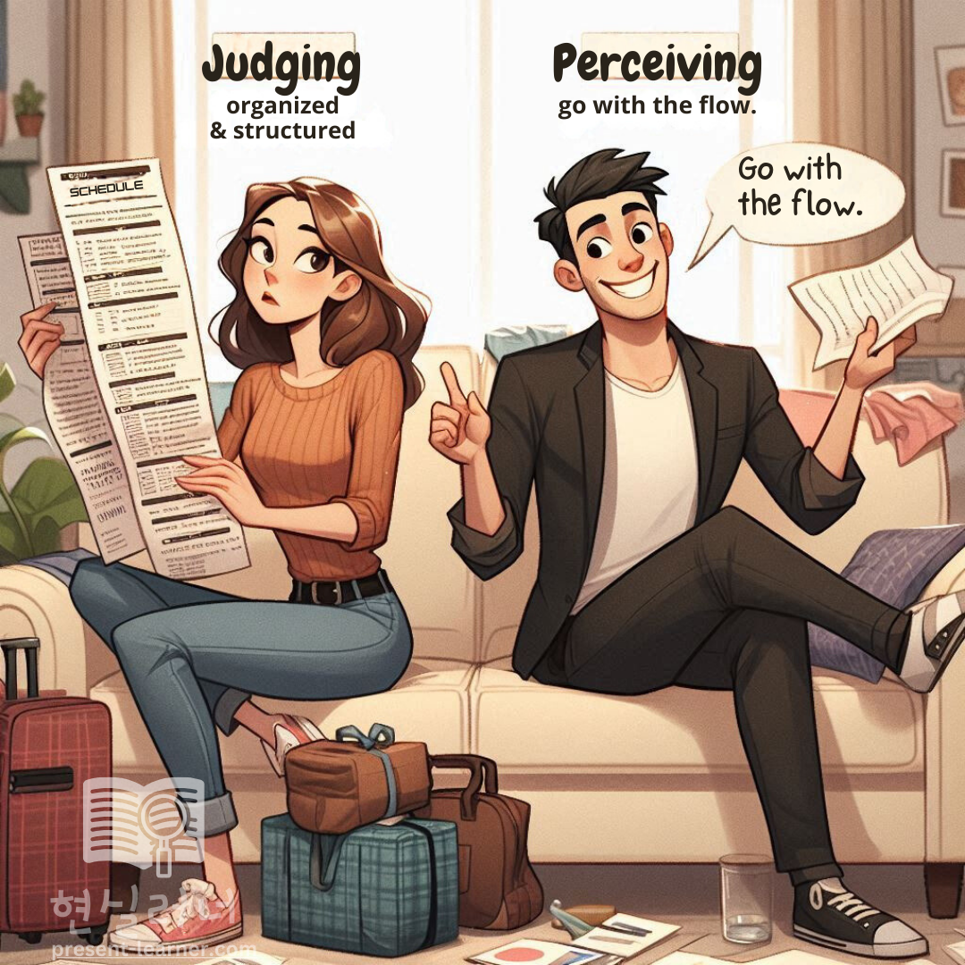 여행 계획이라든가 뭔가를 함께 할 때 J와 P 성향이 많이 달라서 부딪칠 수 있어요.