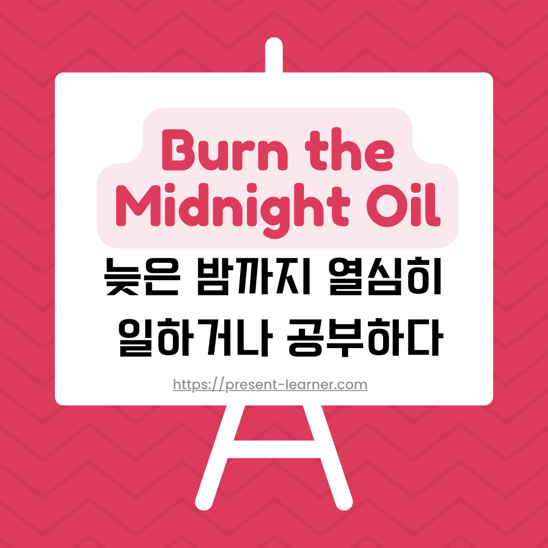 Burn the midnight oil 한밤중 오일을 태우다?(X), 늦은 밤까지 열심히 일하거나 공부하다(O)