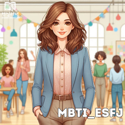 ESFJ의 성향을 나타내주는 캐릭터도 만들어봤어요. ESFP와는 또 다른 분위기가 나네요. 좀 더 지적이고, 당찬 교사의 이미지가 그려지네요. 이번 이미지를 보면서 제가 아는 한 선생님이 떠올랐어요. 그 분의 이미지와 닮았다는 느낌이 들었어요. ^^