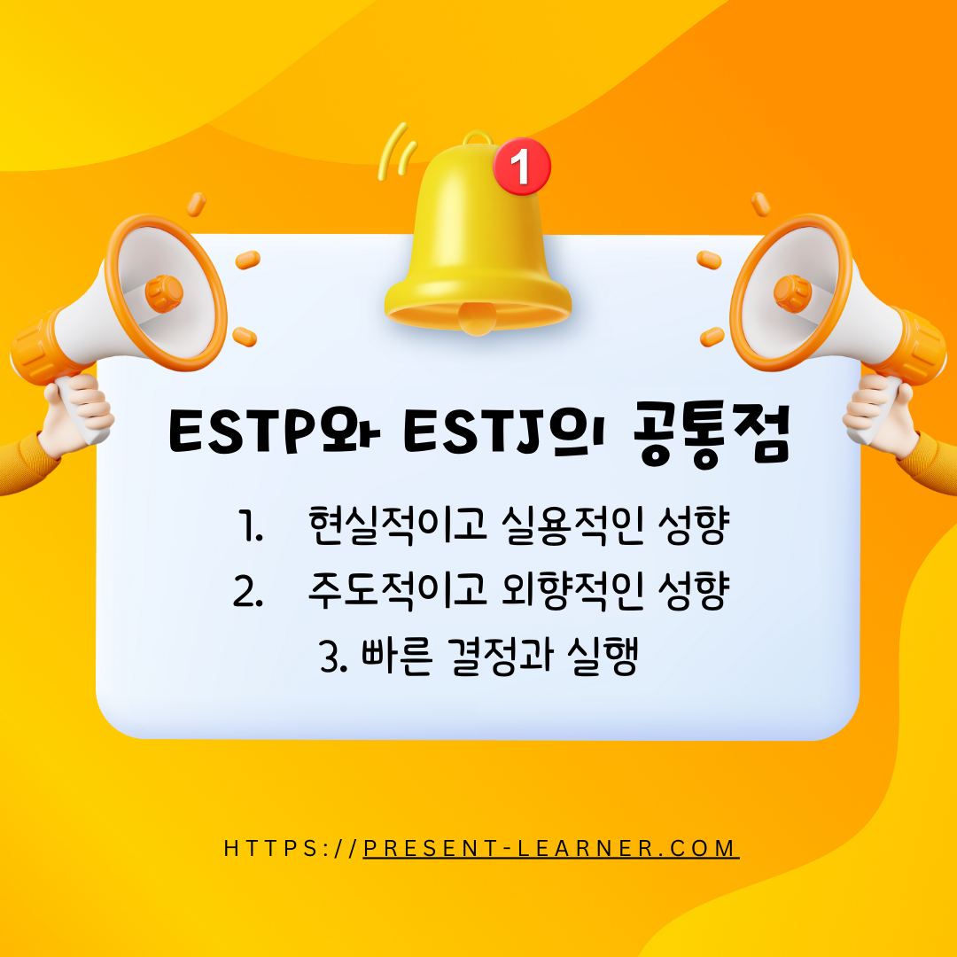ESTP와 ESTJ는 외향적이고 현실적인 성향을 공유하지만, 이 두 유형은 몇 가지 중요한 차이점도 가지고 있어요. 이번 포스팅에서는 ESTP와 ESTJ의 공통점과 차이점에 대해서 다뤄보도록 할게요.