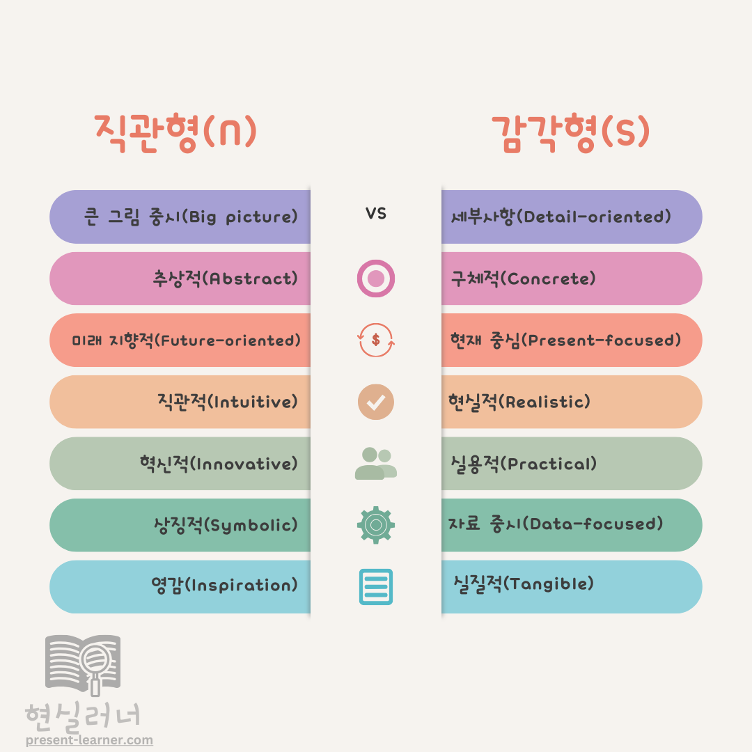 * 현재 중심 - 감각형(S)은 현재의 현실과 구체적인 사실에 중점을 둡니다.