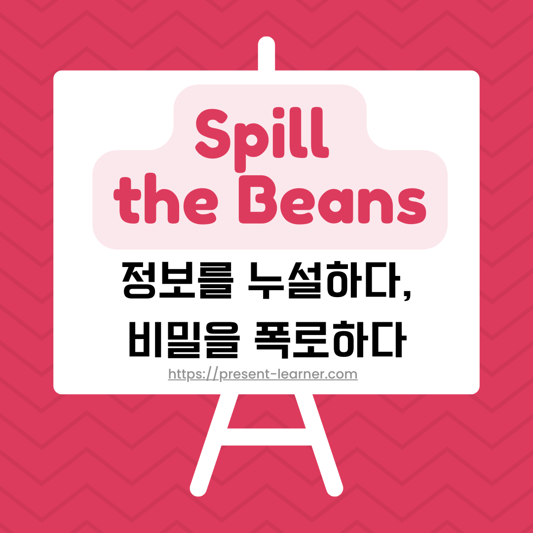 "Spill the benas"는 직역을 하자면, '콩을 쏟다'의 의미지만, 실제로 이 표현은 '정보를 누설하다', '비밀을 폭로하다'의 의미를 가지고 있어요. 주로 비밀을 지키지 못하고 말하게 될 때, 사용되는 표현이에요.