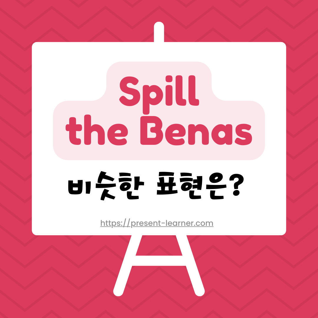 "Spill the benas"는 직역을 하자면, '콩을 쏟다'의 의미지만, 실제로 이 표현은 '정보를 누설하다', '비밀을 폭로하다'의 의미를 가지고 있어요. 주로 비밀을 지키지 못하고 말하게 될 때, 사용되는 표현이에요.